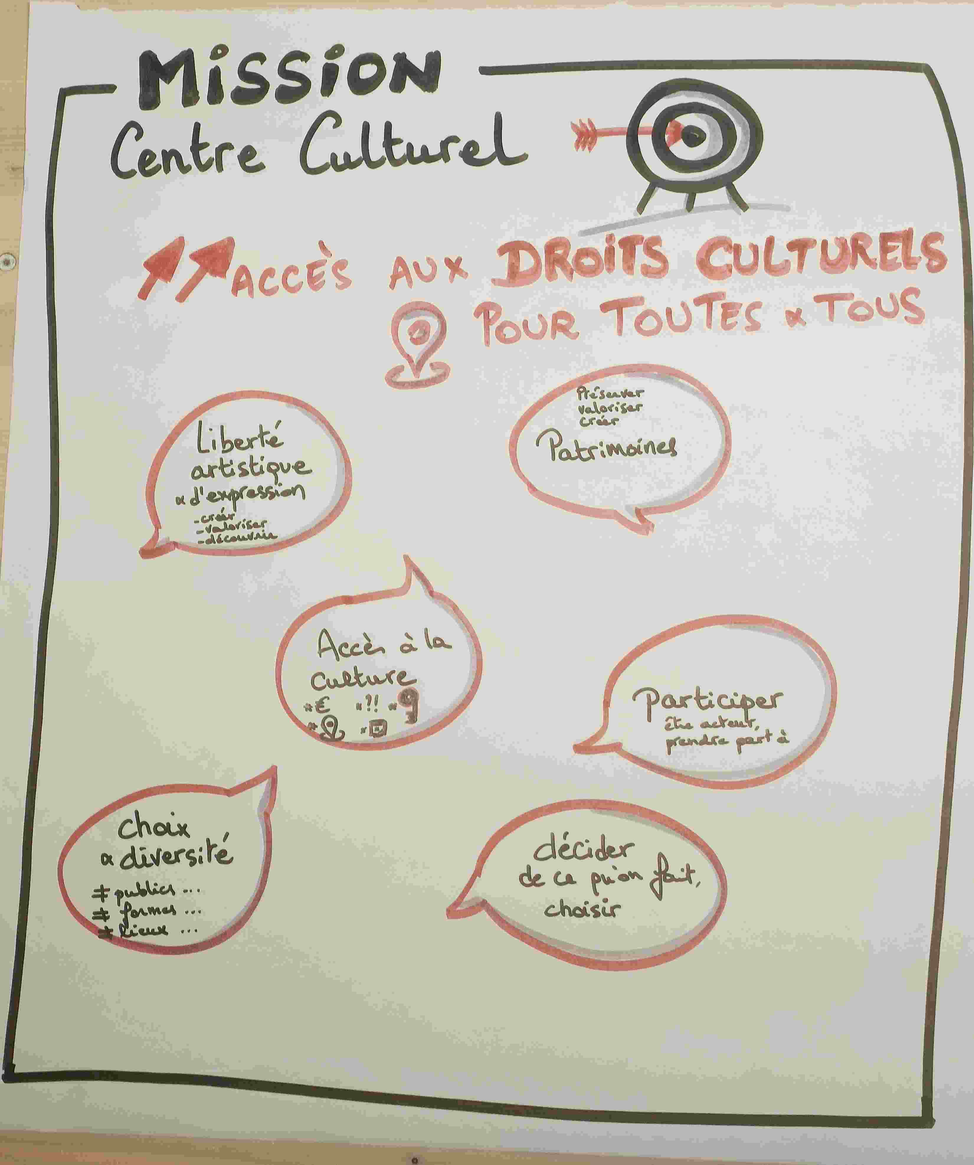 Le décret relatif aux centres culturesl (2013) détaille 6 doits culturels :- 1. La liberté artistique, entendue comme la liberté de s'exprimer de manière créative, de diffuser ses créations et de les promouvoir;